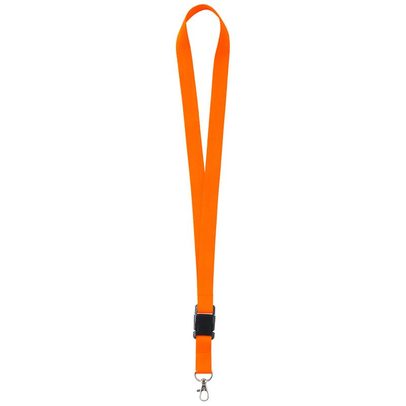 Lanyard made of strong woven polyester, with metal carabiner hook. The lower section is detachable using the quick release plastic clip.