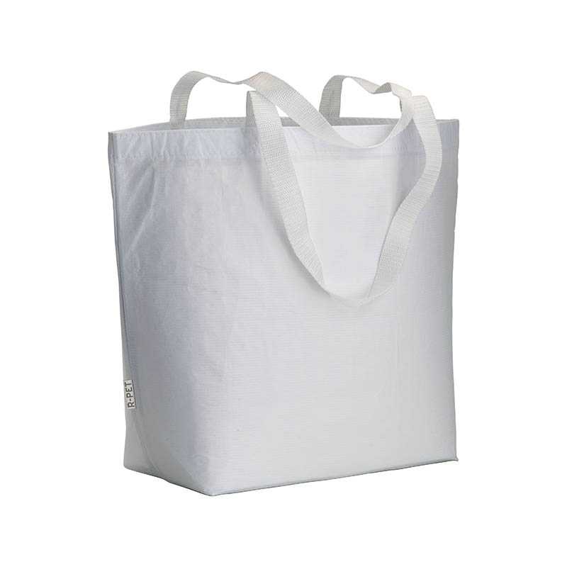Recycled Pet (R-PET) laminated shopping bag with gusset at the base - long polyester handles