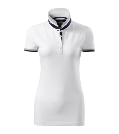 lehce vypasovaný střih s bočními švy, límeček a lemy rukávů z žebrového úpletu 1:1, spodní část límečku a lemy rukávů s kontrastními pruhy, úzká léga s 4 knoflíčky v barvě materiálu, rozparky v bočních švech a spodní léga s kontrastní páskou, vnitřní průk