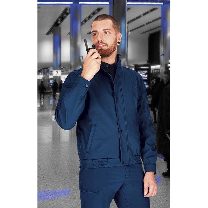 Softshell Jacket with features designed for Security Guards. Made of extra thick three-layered stretch softshell fabric (a water-repellent outer layer, a breathable mid-layer and micro fleece inner layer) providing windproof and water-repellent properties, as well as excellent thermal insulation.Stand-up double layer collar with full-zip flap and snap matching button front closure for warmth and comfort, cuffs with hook-and-eye fastening for better adjustment. Shoulders with tunnel for attaching rigid epaulettes, braids or insignias.Two zippered waist pockets for a secure and convenient storage and side slits with triple-pull zipper for easy access to tactical belt without unbuttoning the jacket. Includes an inside back zip for easy marking with different methods: embroidery, stitching and anti-sublimation heat-stickers.Ideal for security uniforms.