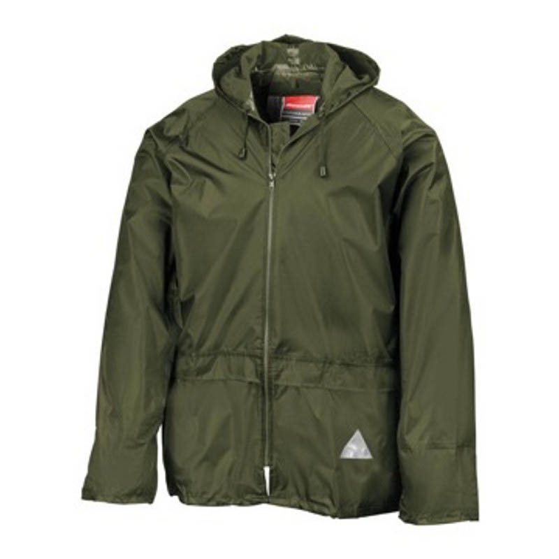 ·100% polyester (190T StormDri 2000 coated) ·Wind- and waterproof (2,000 mm) ·Hood with tear release fastening ·Full zip·Mesh ventilated back ·Inner storm cuffs, adjustable drawcord hem on jacket ·2 spacious front pockets, 2 access pockets to trousers ·Elasticated waist on trousers ·Adjustable snap closing ankles on trousers ·Reflective triangles (3M™ Scotchlite™) ·Zip closing stuff bag ·Contains recycled material ·Suitable for digital transfer print, direct print. Značka : RESULT . Materiál : 190T 100% Polyester
