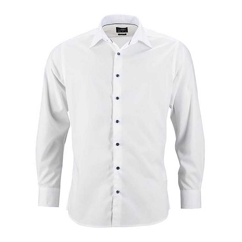 Pánská košile se vsazenými barevnými detaily.Vysoce kvalitní popelín, easy-care, snadné žehlení.Kontrastní barevné detaily na rubu límce a manžet.Kontrastní knoflíky .5/4 . (ks v jednom sáčku / celkem ks v kartonu)