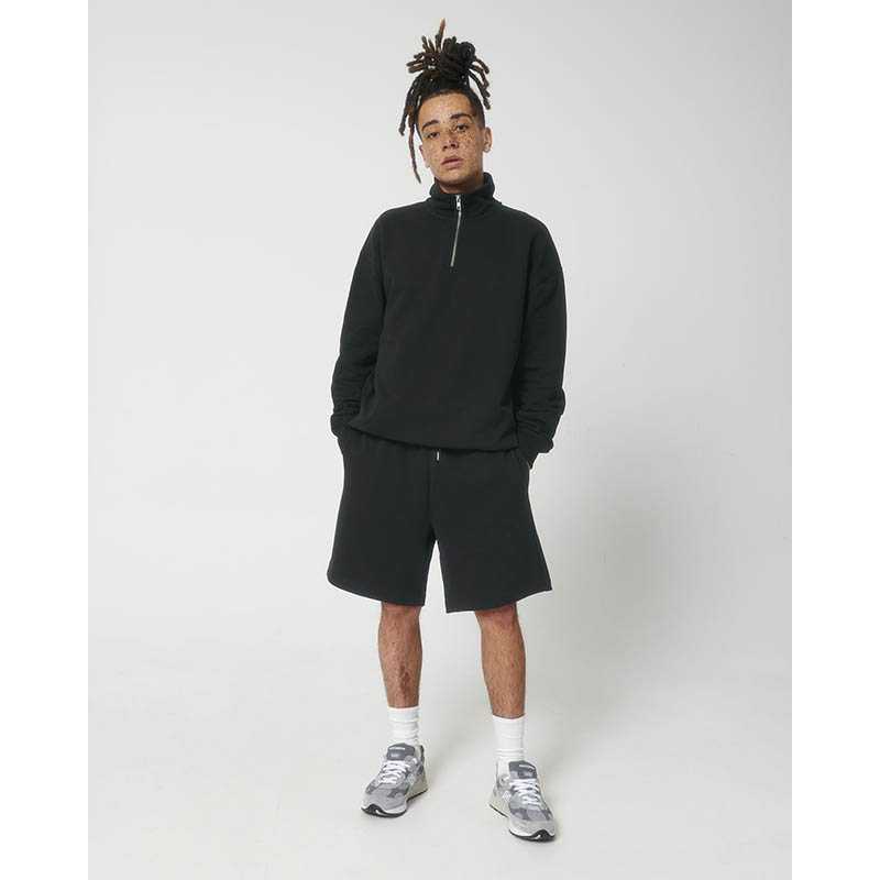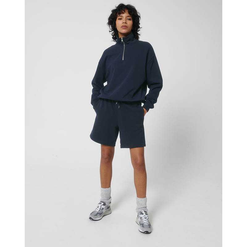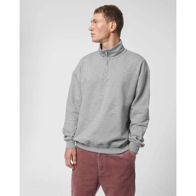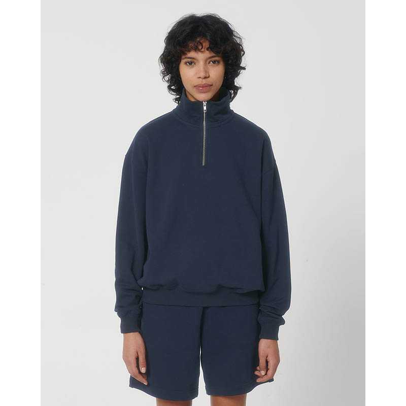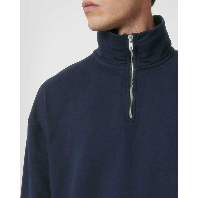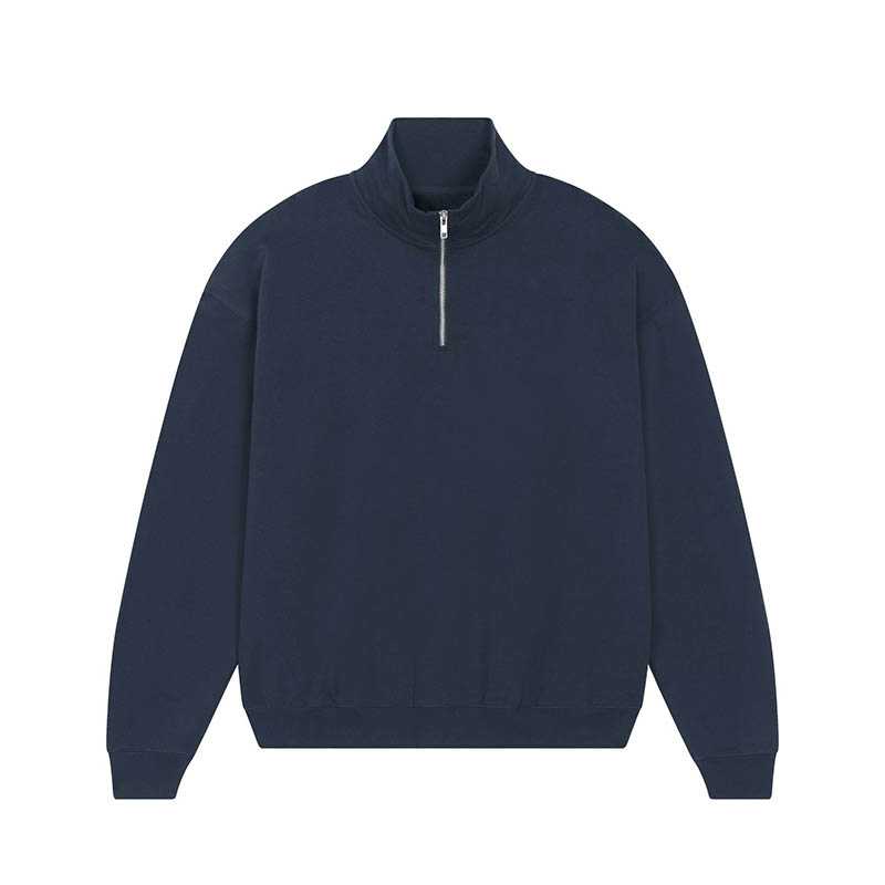 Set-in sleeve Neck collar in self fabric Herringbone tape at inside back neck and at inside of zipper Quarter zip at center front 2x1 rib at sleeve hem and bottom hem Armhole, sleeve hem and bottom hem with twin needle topstitch