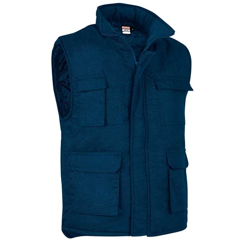 Multi-Pocket Work Vest. Made of microfiber outer fabric, smooth inner lining and inner quilting for ensuring excellent thermal insulation.Stand-up collar with full-zip velcro flap front closure, which provides warmth and comfort. A tailpiece that covers the lumbar zone for added comfort and also provides a large printing area. Six outer velcro flap pockets, and an inner velcro pocket for convenient storage, also include two pen holders.Includes an inside back zip for easy marking with different methods: screen printing, embroidery, transfer printing, badges, shields, vinyl application. Ideal as workwear for different types of industry due to its comfort and functionality.