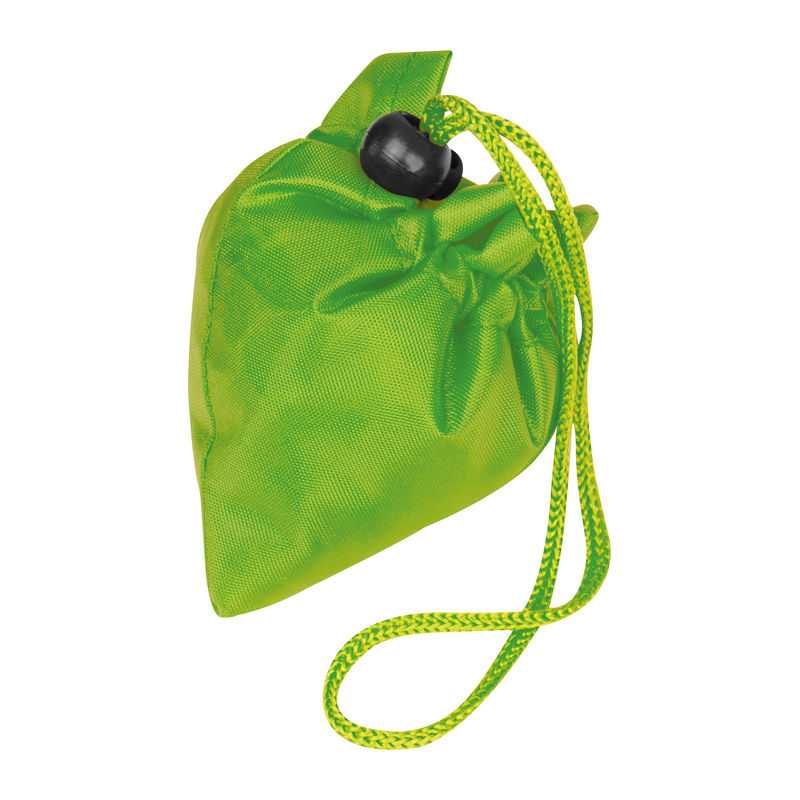 NOVINKA 2025. Folding bag in bright, vivid tones. Made of soft 190T polyester, with comfortable handles and matching color drawstring. Adjustment accessory for an easy folding.