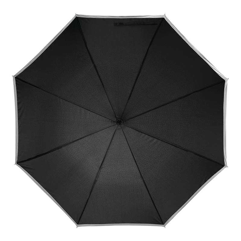21'' dvojitý deštník z Pongee, s plastovou rukojetí vč. poutka na zápěstí. Výřez v reflexní šedé. Zahrnuje pouzdro. Automatické otevírání.
