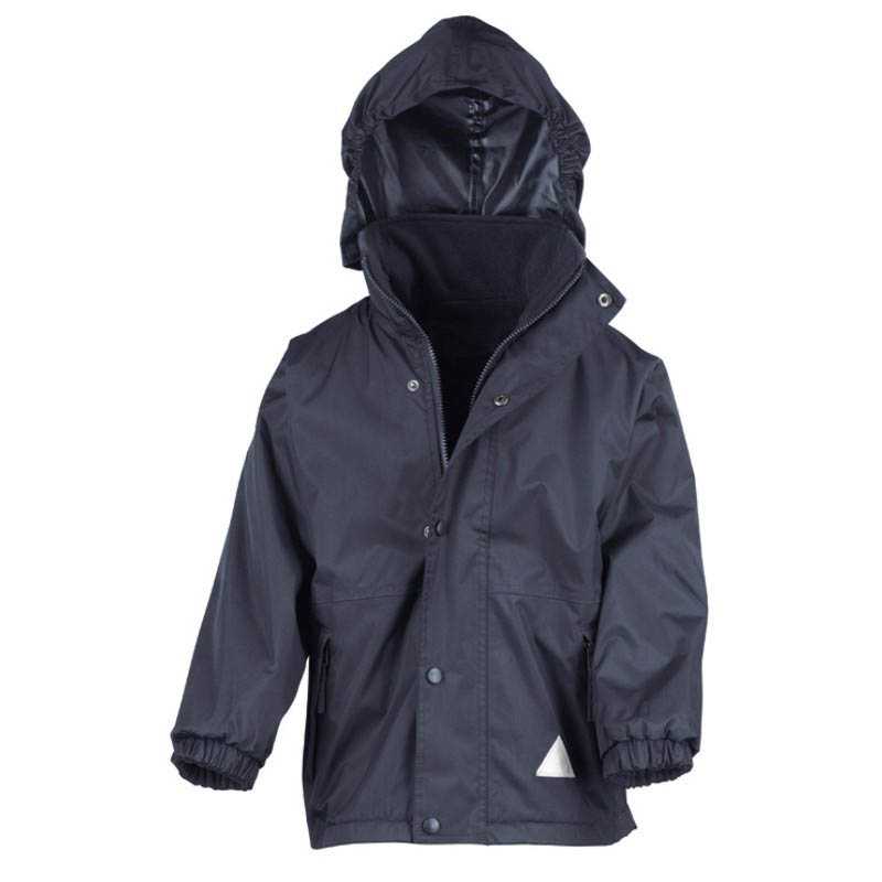 ·Outer: 280 gsm, 100% polyester (StormDri 4000) with PVC coating ·Reverse (partly in contrast color): 280 gsm, 100% polyester (Active Fleece by Result®, anti-pilling) ·Double stitched taped seams ·Wind and waterproof (4,000 mm) ·Concealed hood in collar with tear release ·Safety hang tag incorporating 3M™ reflective materials (upper back of polyester reverse) ·Reversible full zip with stud closing storm flap ·Elasticated cuffs ·Zipped side pockets ·Decoration access in hem ·Suitable for: fleece: embroidery; outer: embroidery, direct print and transfer print. Značka : RESULT . Materiál : 280g/m2; 100% Polyester