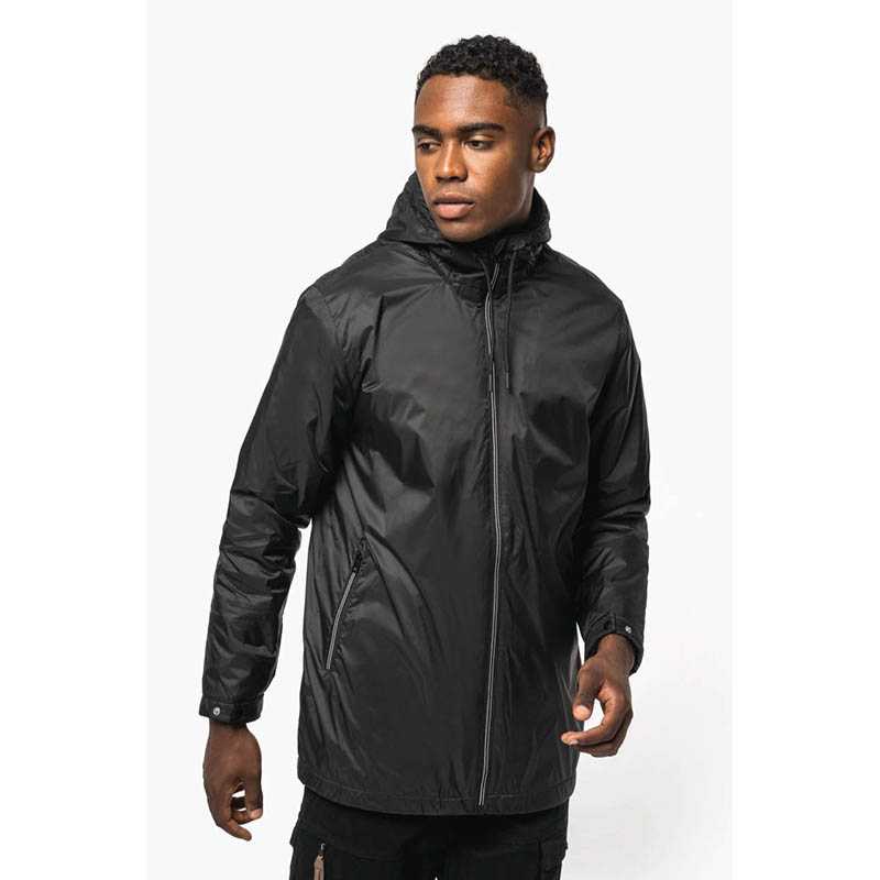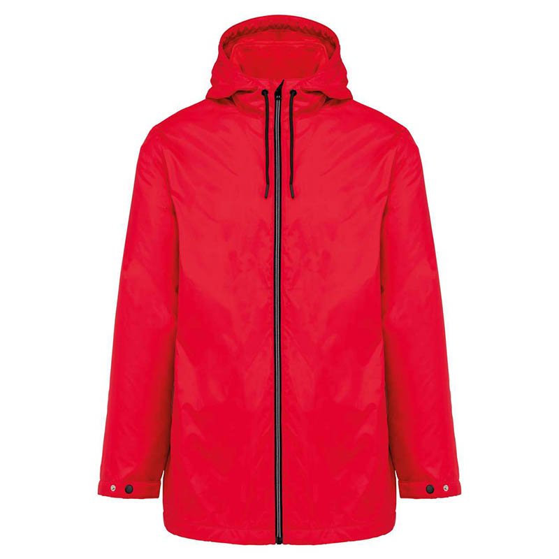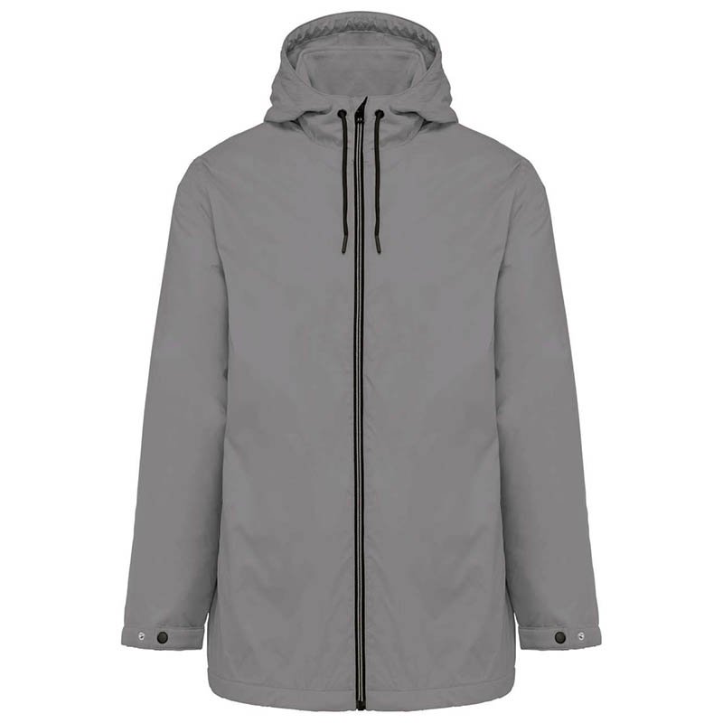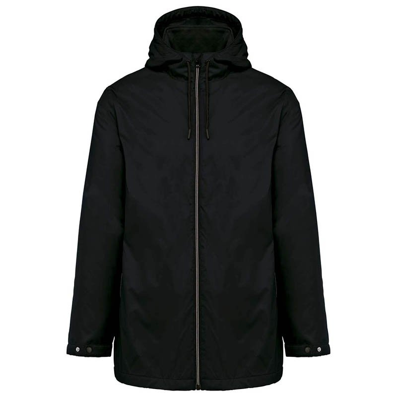 Fleece-Lined Waterproof Hooded Parka with Pockets. Made of waterproof outer flat weave, and anti-pilling micro fleece inner fabric that provides excellent thermal insulation.Stand-up collar with full-zip velcro flap front closure for warmth and comfort. Hidden hood that can be easily opened and closed by velcro closure and also can be used as a raincoat. Thermo-sealed seams that prevent water leaks.Includes an inside back zip for easy marking with different methods: screen printing, embroidery, transfer printing, shields, vinyl application. Ideal as promotional clothing, workwear and outdoor activities.
