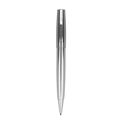 “Collection 8” ballpoint pen made of silver-plated brass. Texture with geometric pattern. Black refill. Size 13,3x1,2 cm. The pen is packaged in a pretty cylindrical case in Havana cardboard.