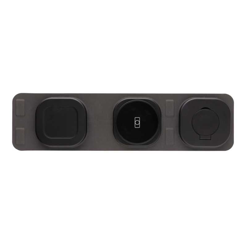 Luxusní skládací bezdrátová nabíječka 3 v 1 ideální na cesty. Je vybavená magnetickou 15W bezdrátovou nabíječkou pro telefon, 5W pro menší zařízení (např. nabíjecí krabička TWS sluchátek), 2,5W pro chytré hodinky Apple watch. Vyrobené z RCS recyklovaného ABS plastu. RCS (Recycled Claim Standard) je globální standard, který umožňuje ověřit použití recyklovaného materiálu v produktu napříč celým dodavatelským řetězcem. Celkový podíl recyklátu dle váhy produktu: 46 %. Včetně 120 cm nabíjecího kabelu z recyklovaného TPE. Výrobek je kompletně bez PVC. Baleno v FSC kraftové dárkové krabičce. Vstup: 9V/3A pro omptimální použití. Výstup: telefon: 9V/1,1A, 9V/1,67A (15W); sluchátka: 5V/1A (5W); hodinky: 5V/0,5A (2,5W).