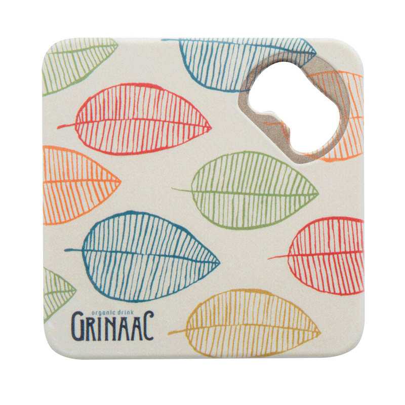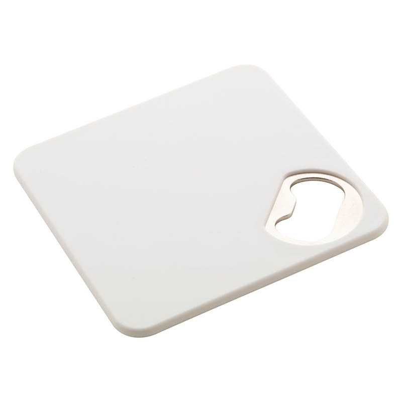 Podtácek s otvírákem lahví a protiskluzovou spodní stranou. 82 x 82 x 4 mm
