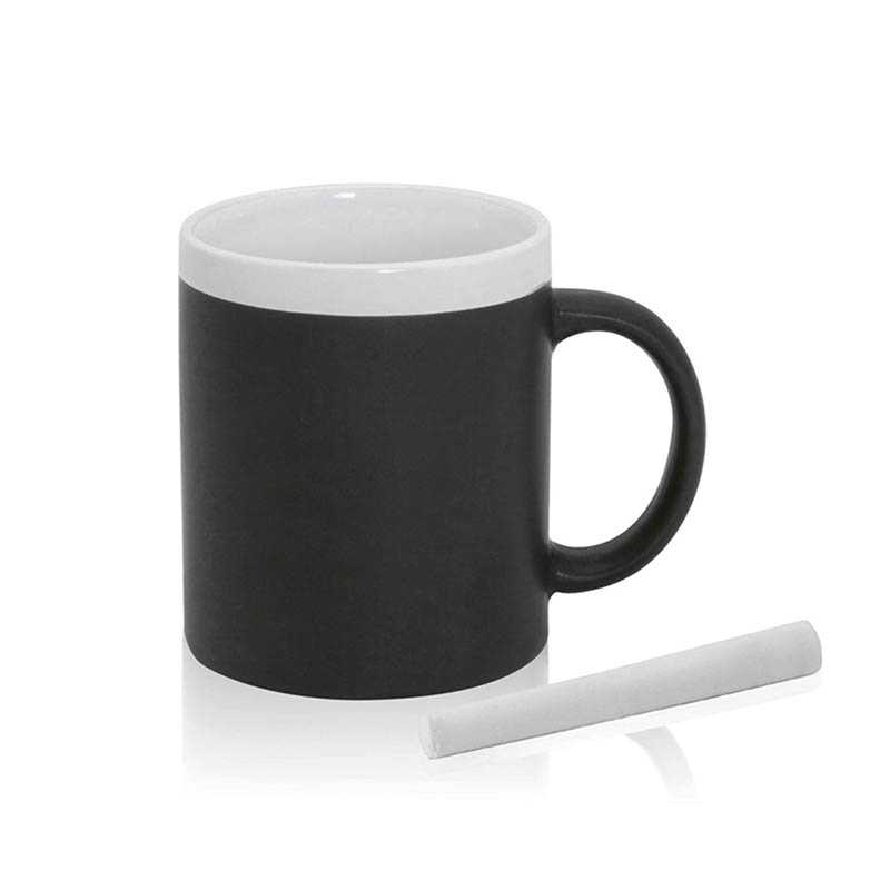 NOVINKA 2025. 350ml ceramic mug with blackboard blackboard body for painting and mouthpiece in fun range of vivid colors. Chalk included in matching color and presented in an individual box.