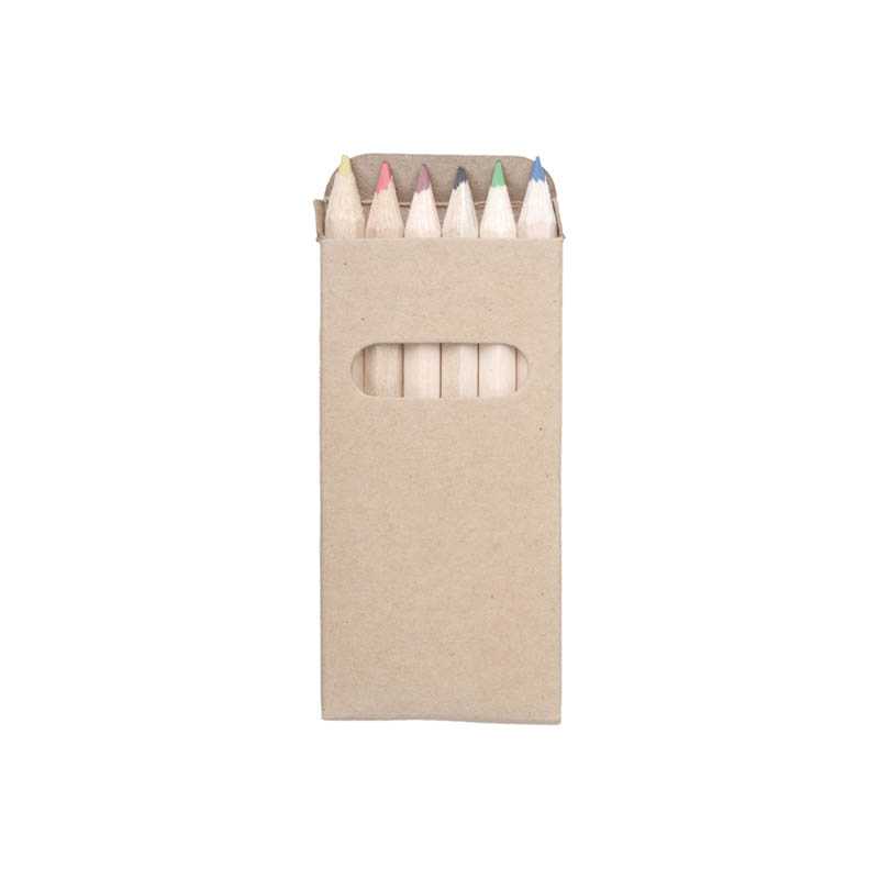 Dřevěné pastelky (6 ks) v barevné papírové krabičce.