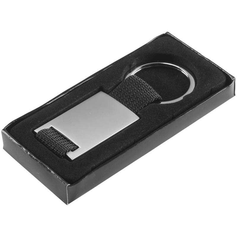 Key ring made of matte steel combined with strong woven nylon and a sturdy key ring. Each piece in box.