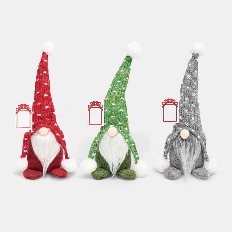 NOVINKA 2023 XMASS. Christmas gnome FRANZ : woollen pointy hat with white pompom, cap can be shaped as desired due to integrated wire, decorative figure filled with gravel for safe standing, with gift tag to print on