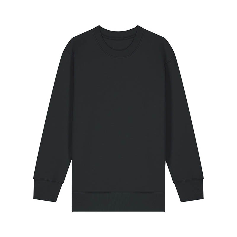 Set-in sleeve 1x1 rib at neck collar, sleeve hem and bottom hem Inside back neck tape in single jersey Self fabric Half moon at back neck with 3 mm twin needle Single needle topstitch at neck collar 2 needle topstitch centered on seam at hem, cuff a