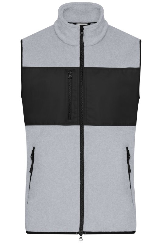 Fleecová vesta s mixem materiálůKlasický měkký a snadno udržovatelný fleece z recyklovaného polyesteruVsadka s tkané látky s náprsní kapsou2 boční kapsy, 1 náprsní kapsa na zipUvnitř dvě kapsyDvoucestný zipZnačkové zipy - YKK