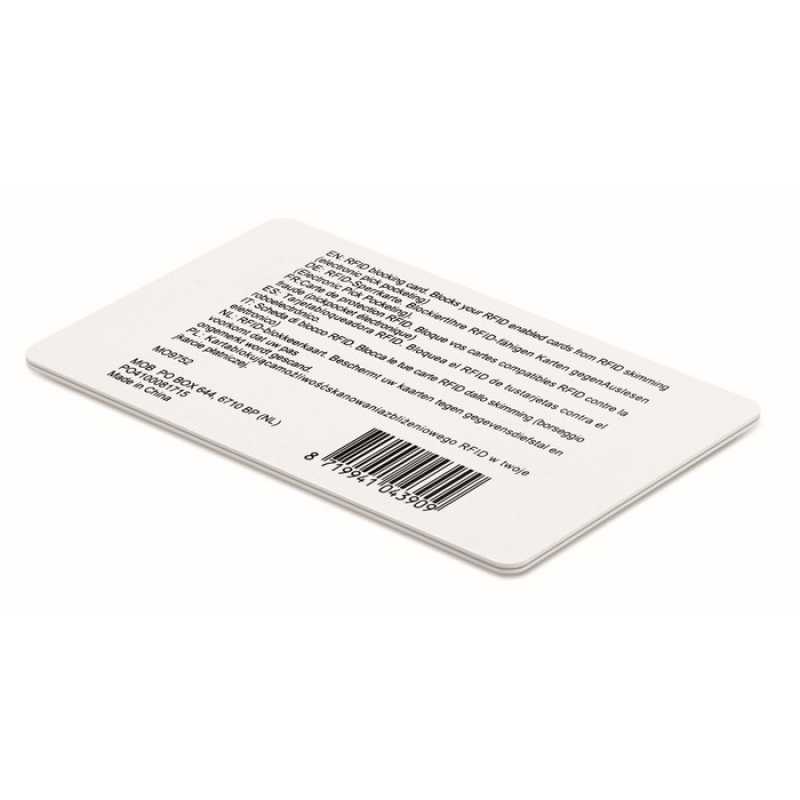 Ochrana pro Vaše bezkontaktní RFID kreditní karty je dokonalým zabezpečením proti podvodům a krádežím identity, neboť má elektromagnetický štít. Držák je tak tenký, že ho můžete stále nosit ve své peněžence, kabelce nebo kapse. Nabízí také velký prostor pro reklamní dekorace.