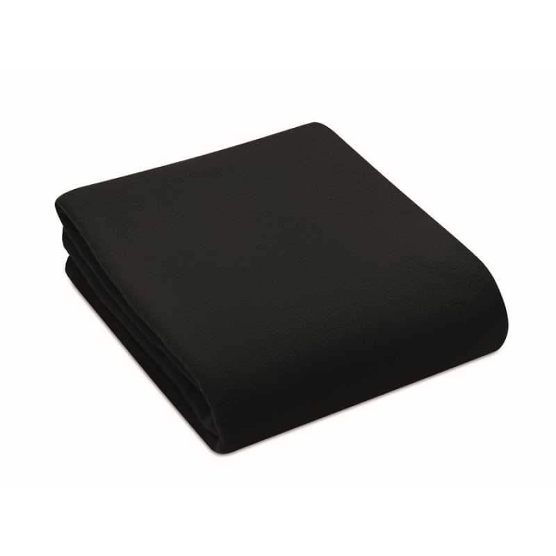 Fleece (165 gr/m2) travel blanket with nylon carrying handle, unfolded size +/- 115 cm x 135 cm.