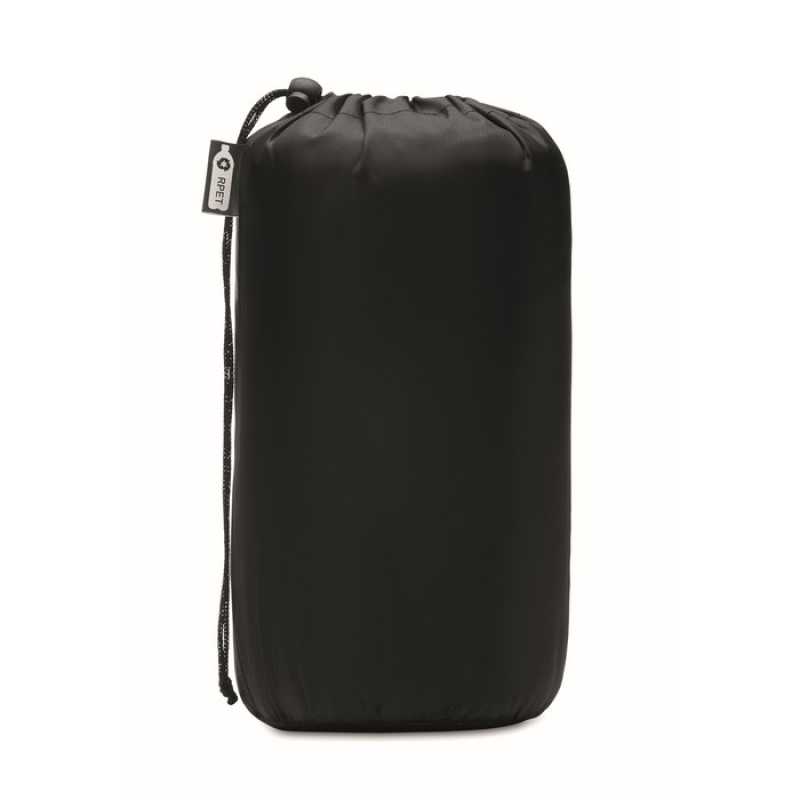 RPET foldable polar fleece blanket. 150gms. PEVA backing. Zippered front pocket. Short handle.