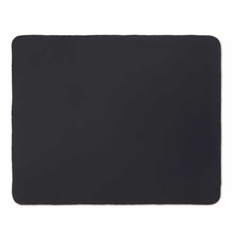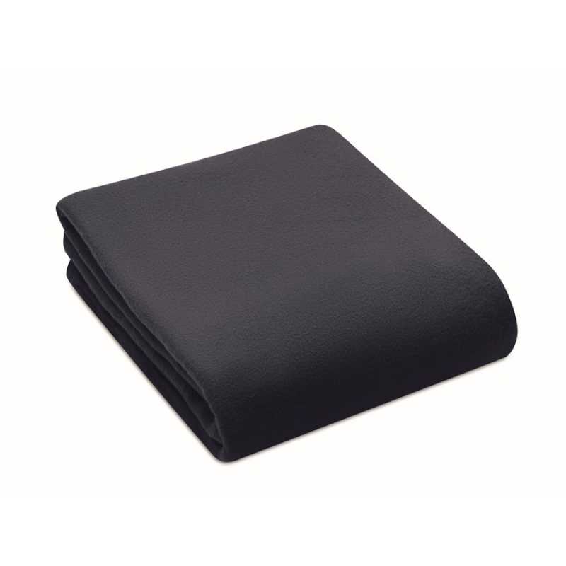 Flannel fleece (280 gr/m2) blanket with white ribbon and cardboard. Size: 120 x 150 cm.