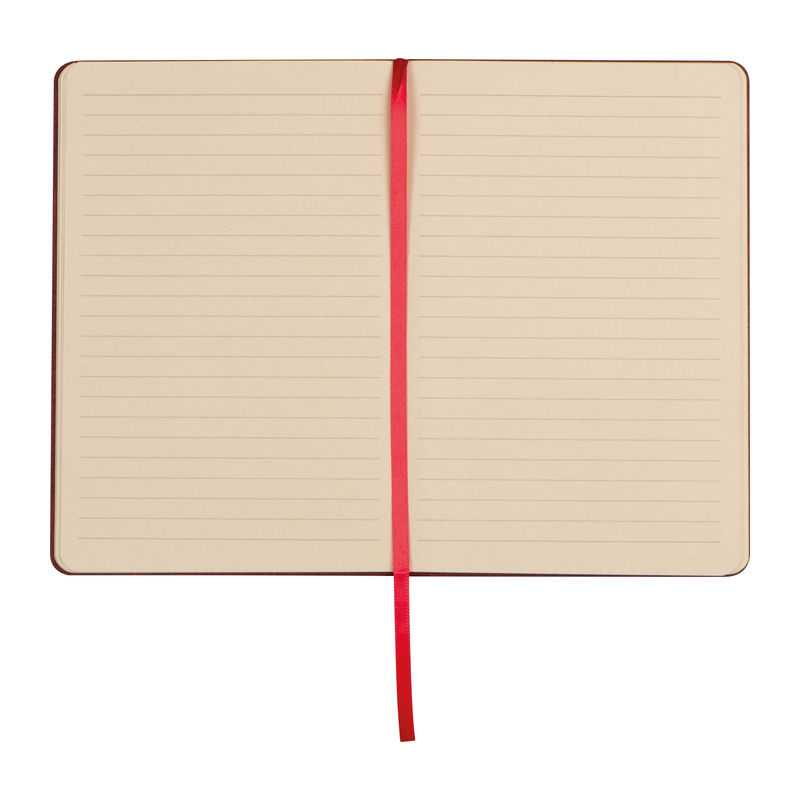Zápisník A5 s tvrdou obálkou z 600D RPETu. 160 linkovaných stránek z recyklovaného papíru (80 listů). Zavírací gumička a a záložka v ladící barvě.