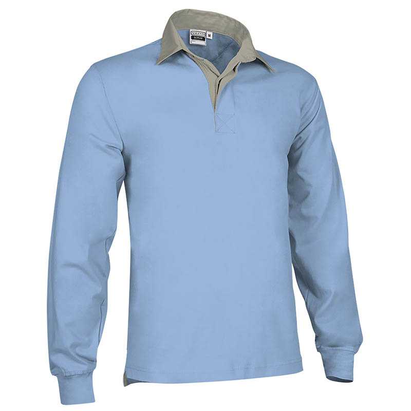 Two-Tone Long Sleeve Rugby Polo Shirt.Made of 100% cotton thick knit fabric for a soft and comfortable feel.Cream twill collar with semi-circular reinforcement at the back to keep its shape, and a three-layered central placket closure with two hidden buttons.Elasticated ribbed cuffs for comfortably fitting.Double stitching on bottom hem and side slits for enhanced mobility and greater comfort.Includes a pocket for sewing and showcasing different suitable marking methods: screen printing, embroidery, transfer printing, badges, shields. Ideal as sportswear, promotional clothing and casual wear.