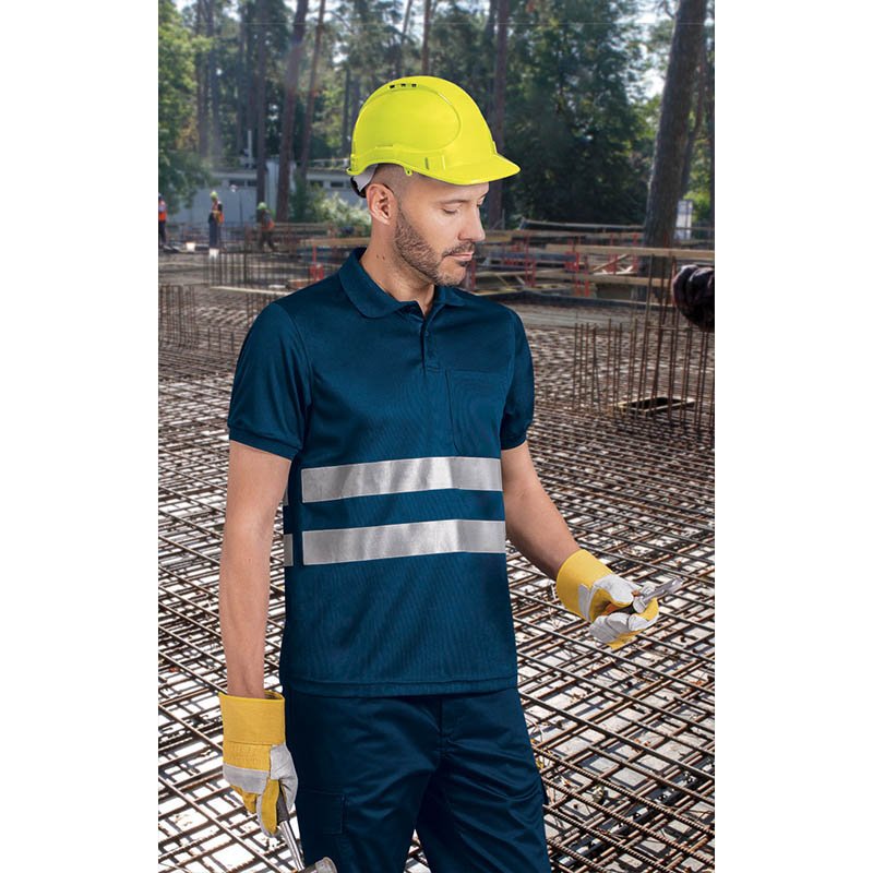 Enhanced Visibility Short Sleeve Polo Shirt with Pocket.Made of breathable technical fabric that promotes quick-drying and sweat wicking, includes two thermo-fixed elastic reflective tapes on torso and back for enhanced visibility and unrestricted movement. Garment certified as an Enhanced Visibility Category II PPE based on 13688 and 17353 standards, type B3 for night visibility.Tricot collar and cuffs for comfortably fitting, flap and two matching button opening for a personalised fit, and an inner tape to keep its shape.A reinforced left chest pocket for convenient storage and showcase the branding. Suitable marking methods: screen printing, embroidery, transfer printing, vinyl application.Ideal as workwear and uniforms.