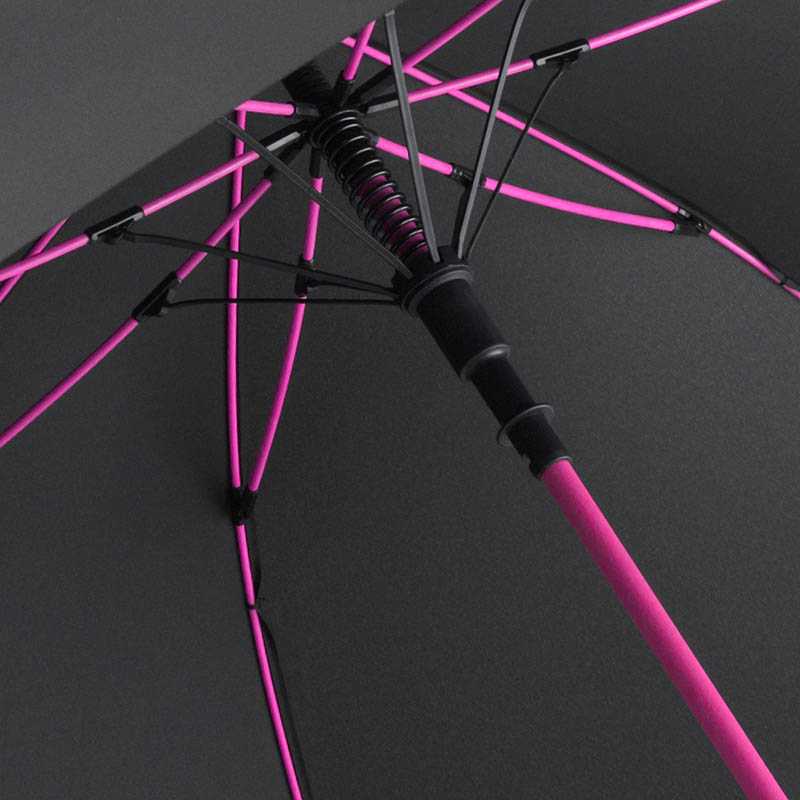 Convenient automatic function for a quick opening, high-quality Windproof PLUS system for maximum frame flexibility in stormy conditions, flexible fibreglass ribs, water and dirt repellent cover properties through original Teflon™ fabric protector, dull silver gear stick handle with promotional labelling option (f. e. shifting gate), handle with special finish parts and integrated push button, higher corrosion protection due to galvanized steel shaft. Also available as mini umbrella (art. 5655).