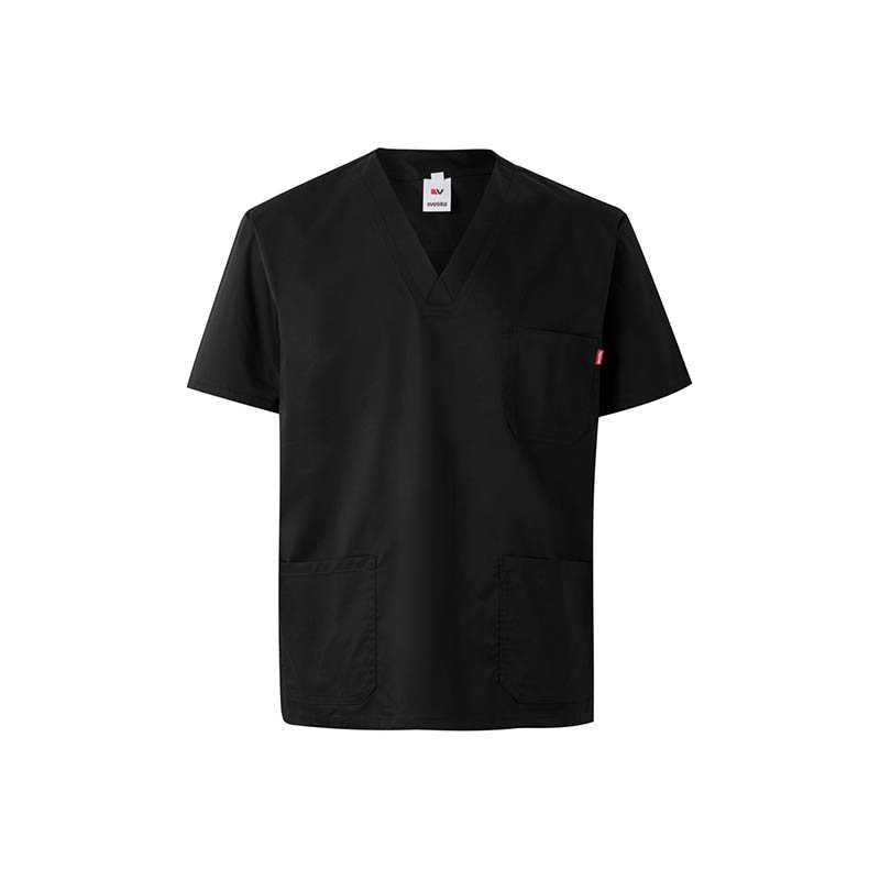 Liquid repellent fabric with antibacterial treatment Asymmetrical front closure with hidden automatic buttons Neckband collar Back fashioned with Coolmax breathable fabric, one-piece Ta