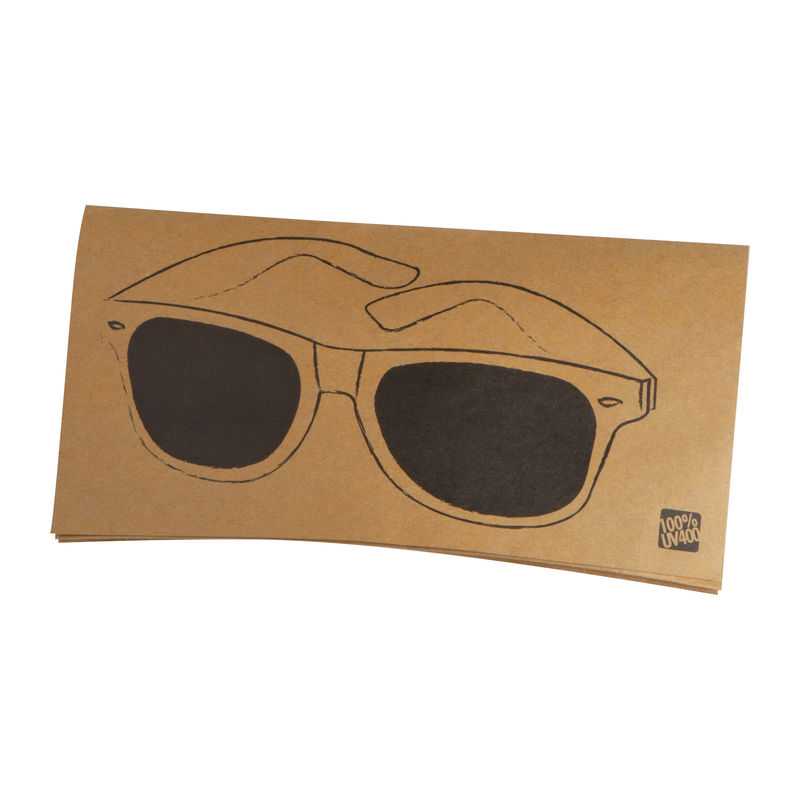 NOVINKA 2025. Nature line sunglasses with UV400 protection. Black frame in durable PC material, with matching tinted lenses and natural cork coated arms. Presented in an attractive eco-design case.