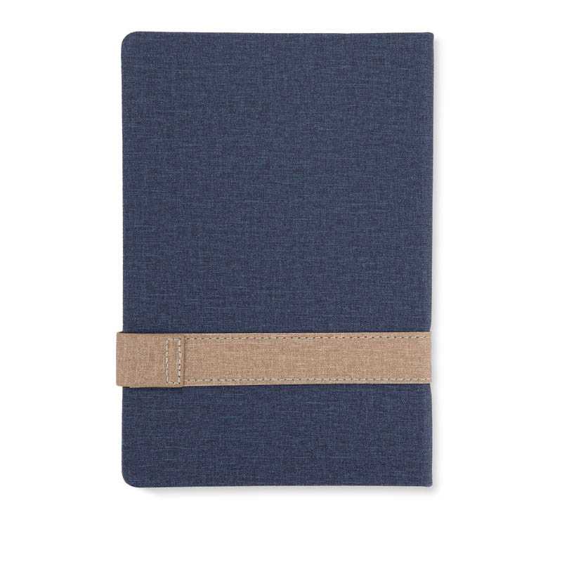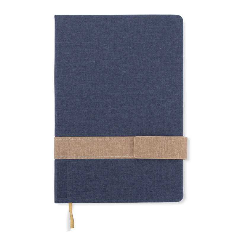 Zápisník A5 v pevnej väzbe z PU s dvomi vreckami a elastickým pútkom na pero. 100 linajkových listov (80 g / m2). Jeden elastický priestor na mobilný telefón a druhý menší na vizitky.