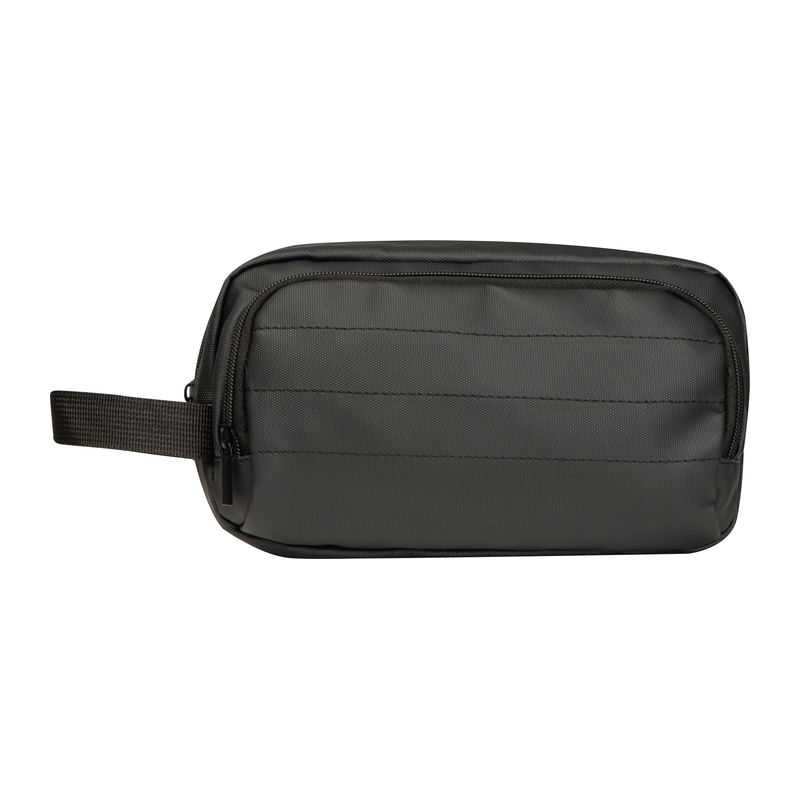 Toaletní taška z 300D s vysokou hustotou, s polstrovaným držadlem a dvojitým zipem. Vnitřek s podšívkou a kapsou na zip. 200 x 115 x 140 mm