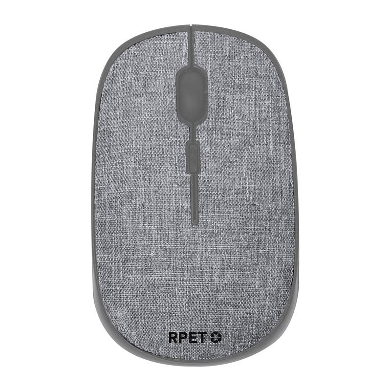 Bezdrátová optická myš s krytem pokrytým polyesterem RPET. Funguje na 1 AA baterii, dodává se bez baterie.