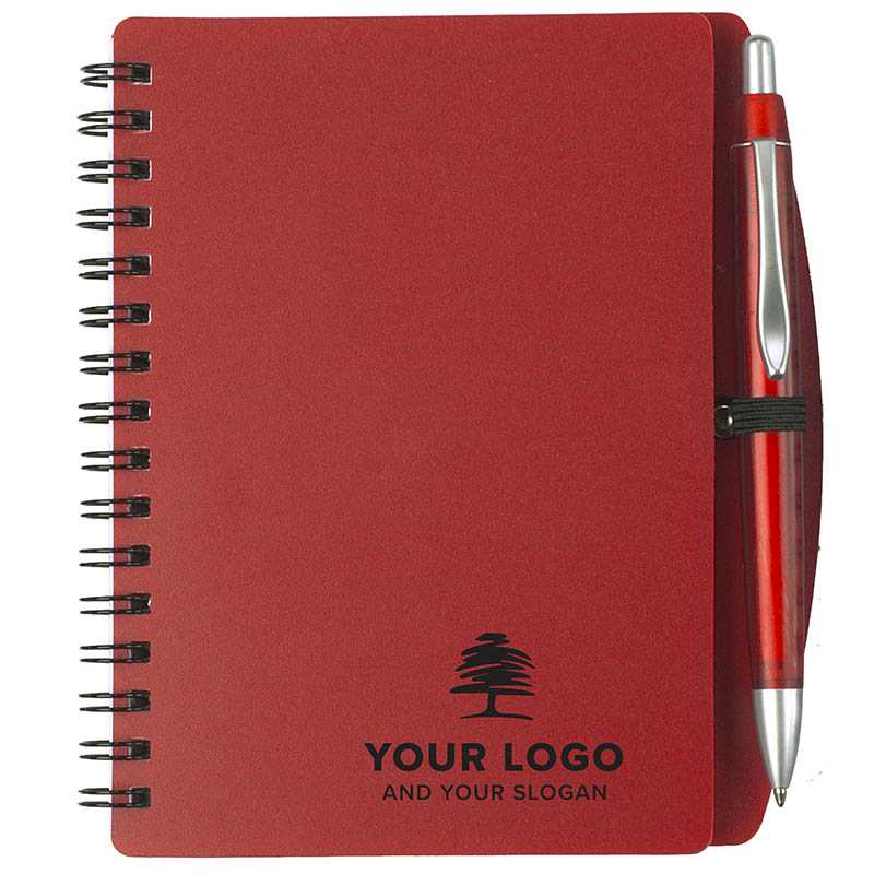 PP, wire bound notebook (approx. A6) with 65 lined pages and plastic ballpen with blue ink.