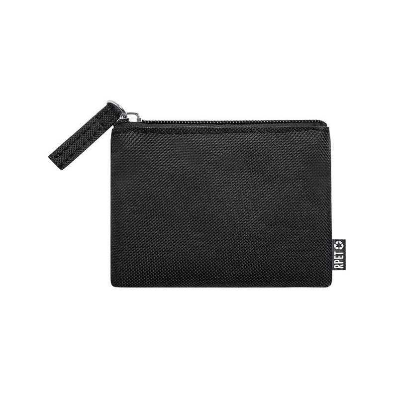 Peněženka na zip ze 600D RPET polyesteru, s etiketou s označením RPET.
