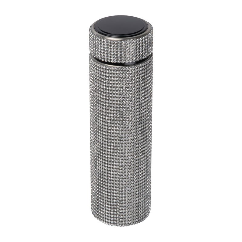 NOVINKA 2025. Veľká dvojstenná vákuová nerezová fľaša vhodná ako termoska s trblietavými kamienkovými prvkami, sitkom a nepriepustným uzáverom. Kapacita 500 ml.
