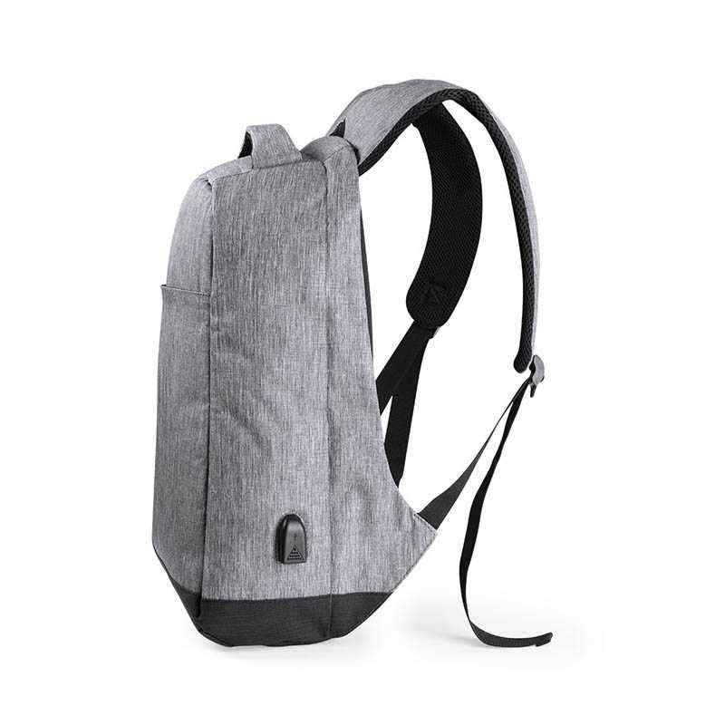 NOVINKA 2025. Anti-theft backpack in durable 300D polyester. High quality, cut and scratch resistant fabric, with anti-theft pocket on the back to store valuables. Zipped main compartment equipped with powerbank connection - not included - and two separate, padded interior compartments for laptops up to 15" and tablet up to 10", plus additional inside pockets. Features an outside front pocket with zip closure. Comfortable to carry using the padded back and ergonomic, adjustable shoulder straps. With trolley fitting accessory.