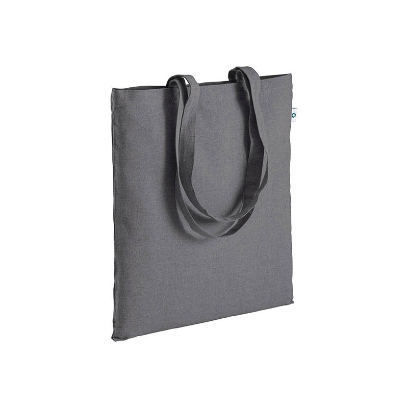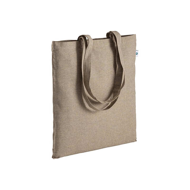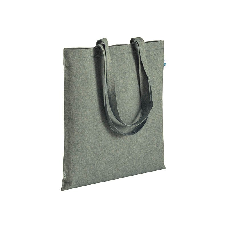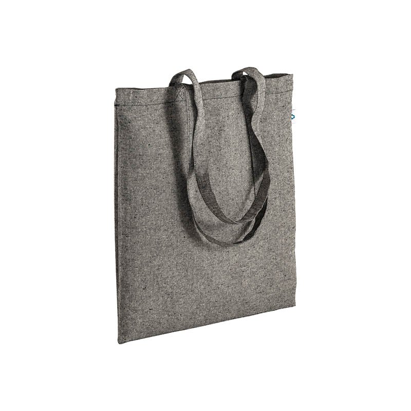 150 g/m2 recycled cotton shopping bag, melange effect, long handles and gusset
