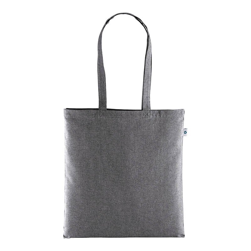 150 g/m2 recycled cotton shopping bag, melange effect, long handles and gusset
