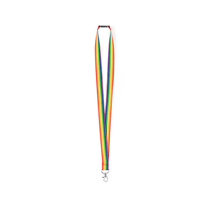 NOVINKA 2025. Multicoloured Rainbow lanyard, made in soft polyester. With metal twist hook and neck safety attachment. A real pride of lanyard.