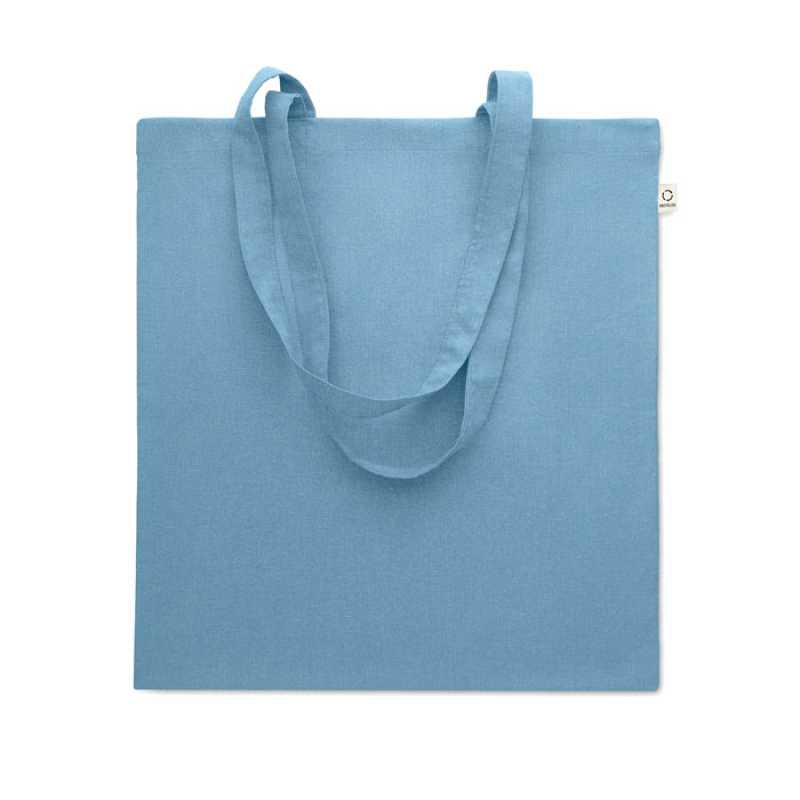 Nákupní taška z recyklované předspotřební bavlny (70 % recyklovaná bavlna a 30 % RPET) s dlouhými uchy. 140 gr/m2. Tato položka se po otisku může zmenšit.