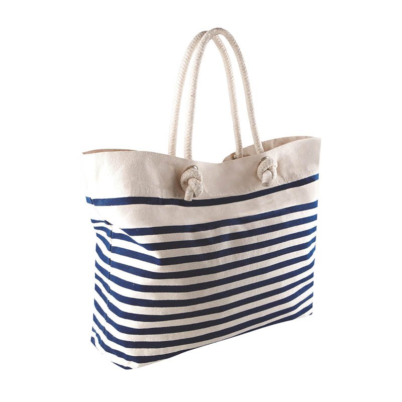 Velká plážová taška v námořnickém stylu z bavlněného plátna.Ucha z bavlněného lana.Vnitřní vrstva na zip.Zapínání na cvočky.