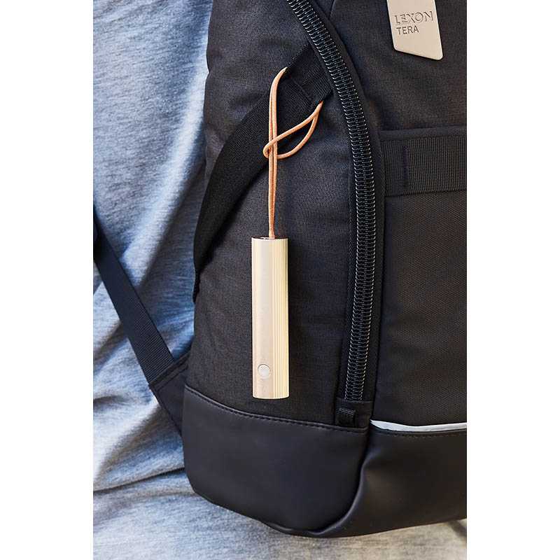 Bag light – Super bright LED – Battery life: up to 4 hours after a full charge - Standby time: up to 6 months - Charging time: 1,5hRechargeable on USB-C port (cable included)Material: aluminium / ABS / leatherSuggested branding: laser - pad print