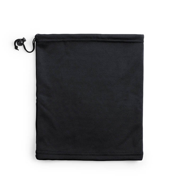 "Neck warmer - 100% polar fleece - Drawstring for size-fits - Not singly sealable (5 pcs minimum qt) - Re: white and red colors have a cotton jersey lining"