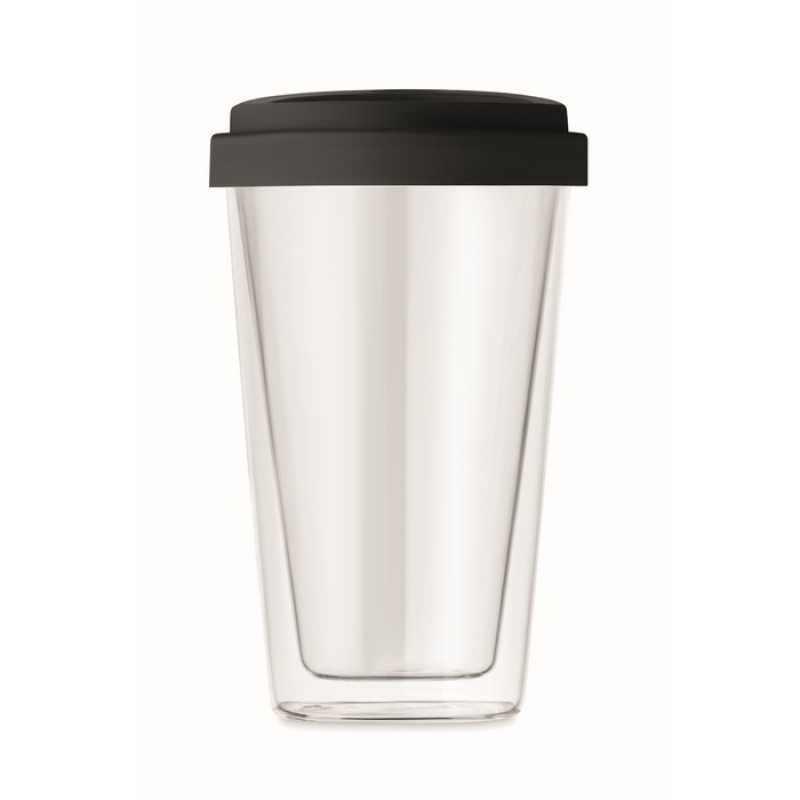 Vysoká borosolikátová sklenka se silikonovým víčkem, objem 350 ml