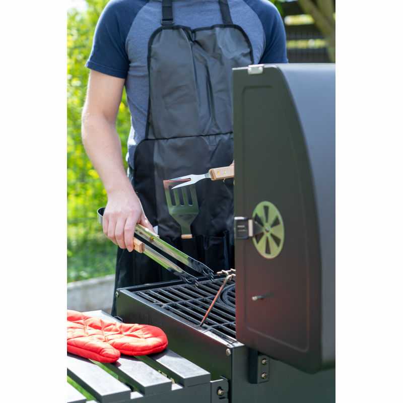 Barbecue zástěra, rukavice a nářadí. Zástěra ze 600D polyesteru.
