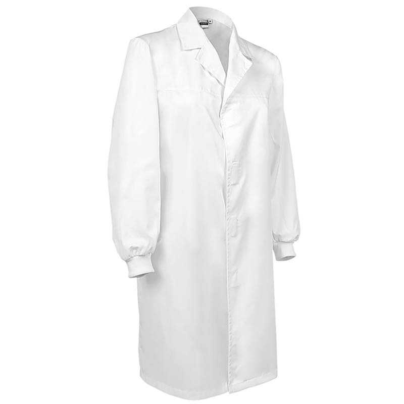 Long Sleeve Lab Coat with Elasticated Cuffs. Made of a sturdy cotton twill fabric blended with polyester for strength and durability.A wide V-neck shirt collar, for optimal comfort and a refreshing feel, and elasticated cuffs that fits comfortably. Velcro front closure and a waistband with sewn-on tape at the back for added comfort. An inner left chest patch pocket for convenient storage and showcase the branding.Suitable marking methods: screen printing, vinyl application, transfer printing, embroidery.Ideal as workwear and uniforms.