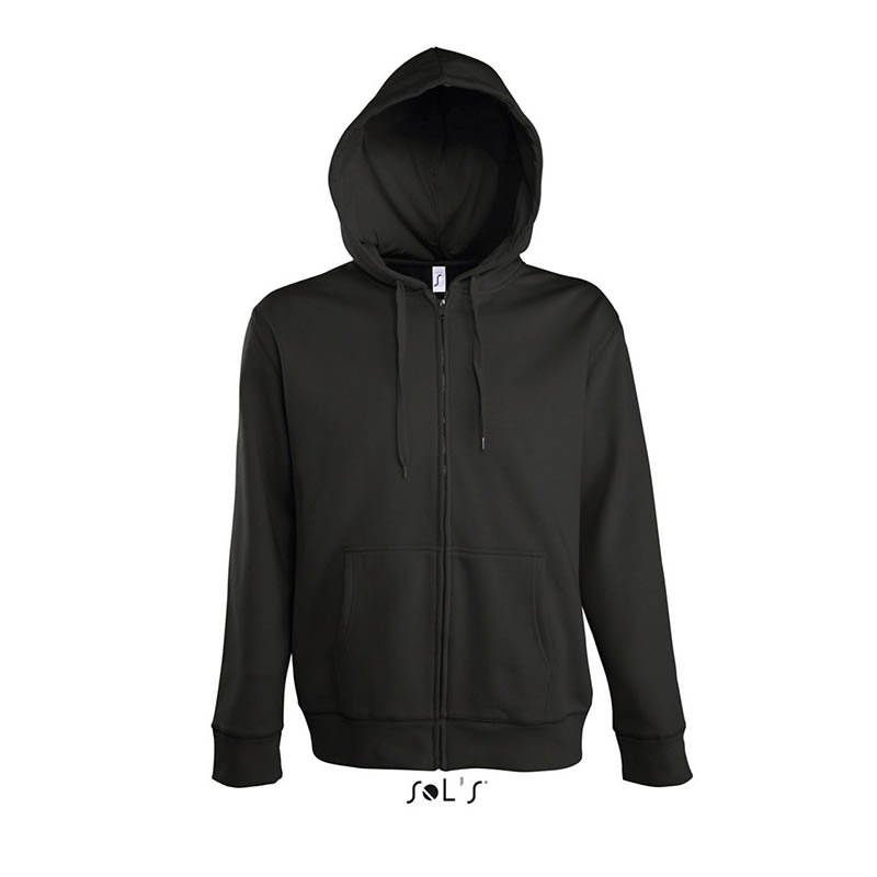 Full-Zip Hoodie with Pockets.Made of durable and long-lasting plush cotton-polyester blend fabric with an inner brushed for optimal thermal insulation and extra comfort.Elasticated ribbed cuffs and waistband for comfortably fitting.Double layer hood with regulable drawstring for a better adjustment and a comfortable fit, full-zip front closure for effortless functionality and practicality.Two slanted split kangaroo waist pockets for convenient storage. Suitable marking methods: screen printing, embroidery, transfer printing, badges, shields. Ideal as promotional clothing and casual wear.