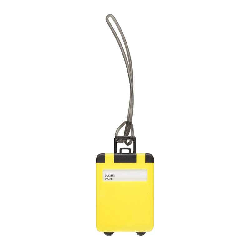 Ekologická plastová visačka na zavazadla z pšeničné slámy ve tvaru kufru, s elastickým páskem.